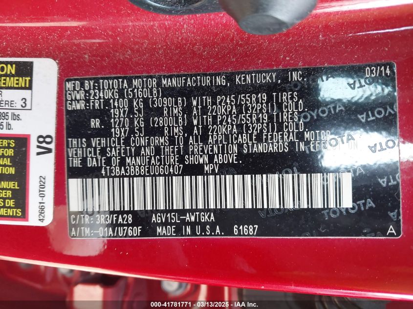 2014 TOYOTA VENZA 2014 року Бензин, 2.7, Полный привод, vin - 4T3BA3BB8EU****** из США
