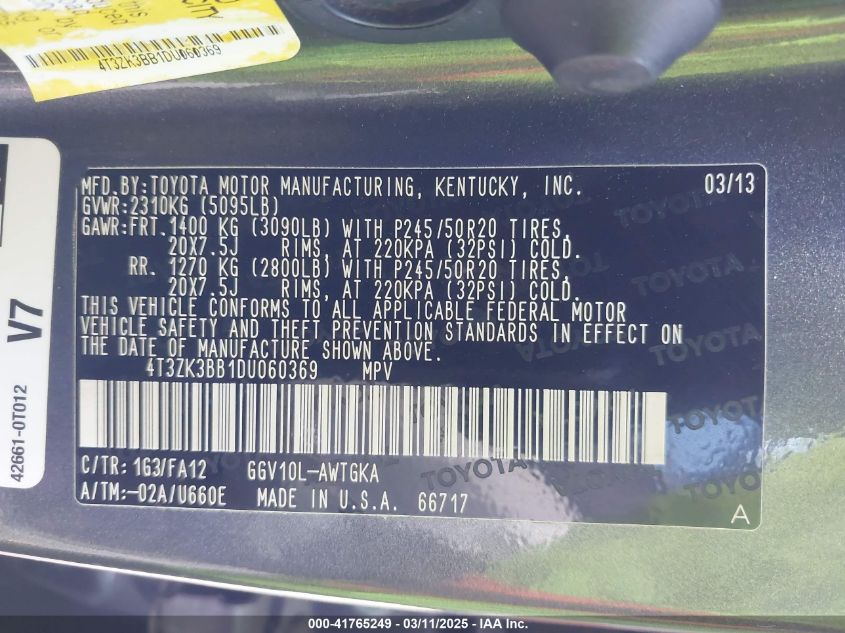 2013 TOYOTA VENZA 2013 року Бензин, 3.5, Передний привод, vin - 4T3ZK3BB1DU****** из США
