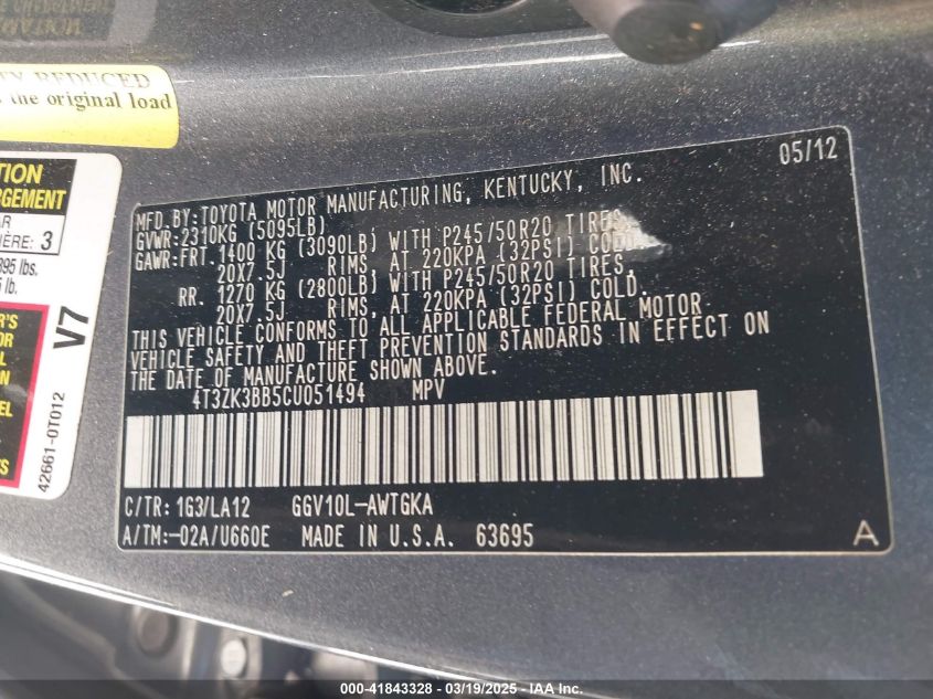 2012 TOYOTA VENZA 2012 року Бензин, 3.5, Передний привод, vin - 4T3ZK3BB5CU****** из США