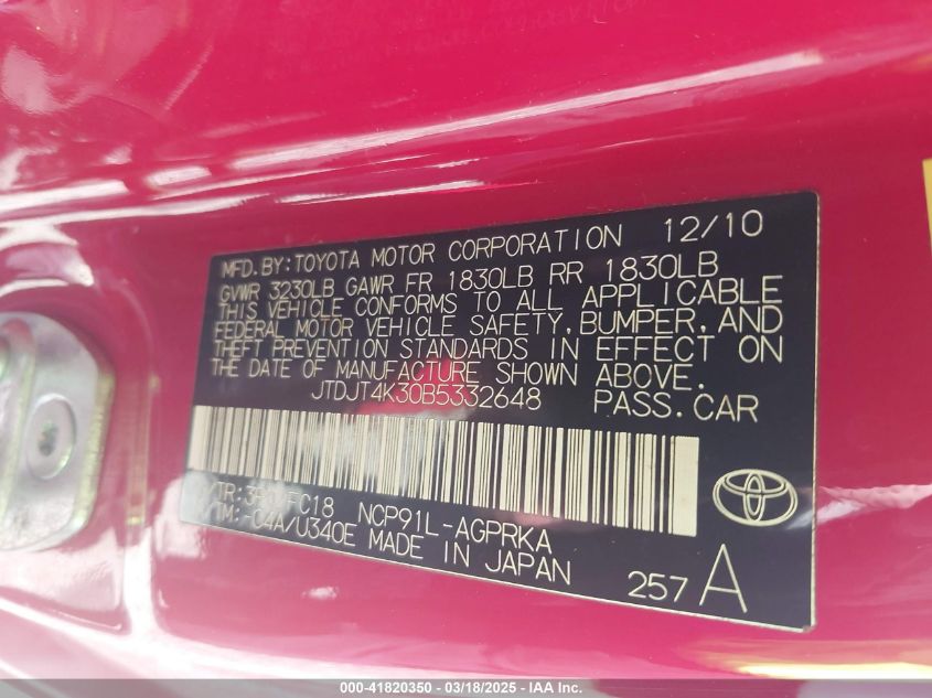 Цвет КрасныйЦилиндры 4Привод Передний приводVIN JTDJT4K30B5******Состояние НеизвестноПовреждения Передняя и задняя AutoRIA