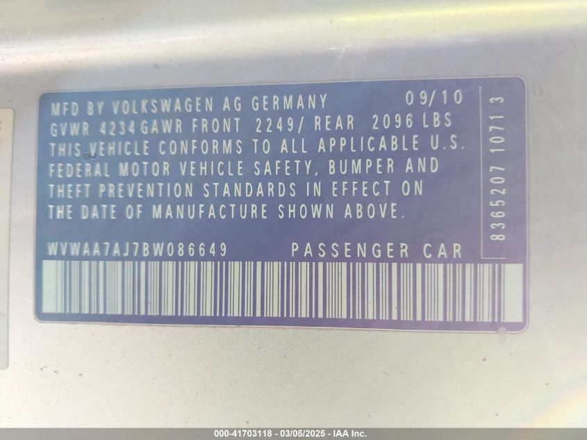 2011 VOLKSWAGEN GOLF 2011 року Бензин, 2.5, Передний привод, vin - WVWAA7AJ7BW****** из США