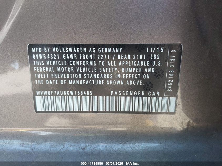 Цвет КоричневийЦилиндры 4Привод Полный приводVIN WVWUF7AU8GW******Состояние НеизвестноПовреждения Передняя леваяДата аукциона 2025-03-31 AutoRIA