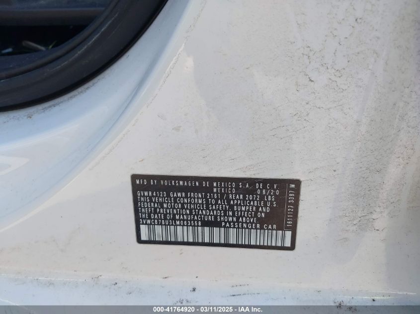 2020 VOLKSWAGEN JETTA 2020 року Бензин, 1.4, Передний привод, vin - 3VWCB7BU3LM****** из США