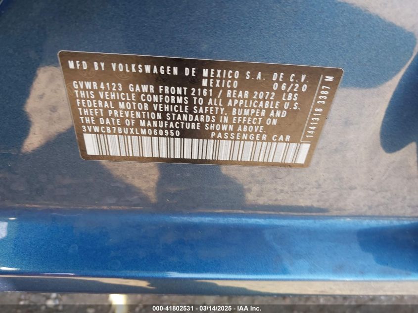 2020 VOLKSWAGEN JETTA 2020 року Бензин, 1.4, Передний привод, vin - 3VWCB7BUXLM****** из США