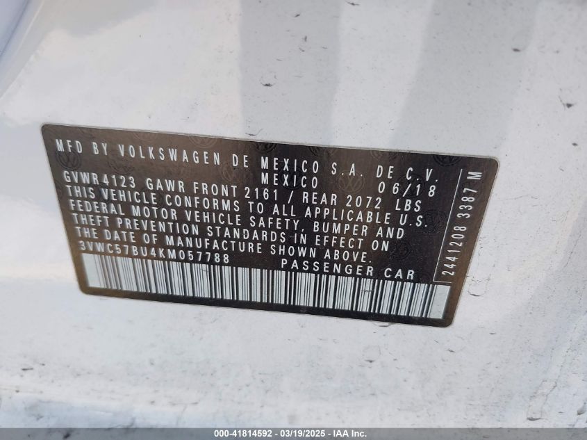 2019 VOLKSWAGEN JETTA 2019 року Бензин, 1.4, Передний привод, vin - 3VWC57BU4KM****** из США