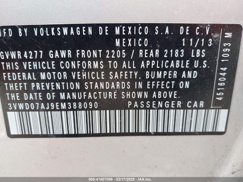 2014 VOLKSWAGEN JETTA 2014 року Бензин, 1.8, Передний привод, vin - 3VWD07AJ9EM****** из США