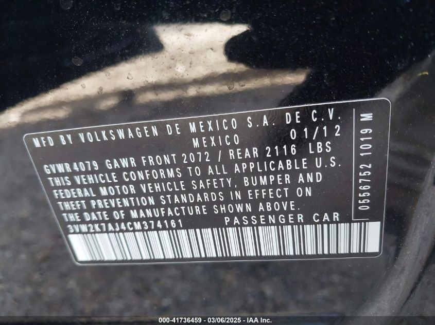 2012 VOLKSWAGEN JETTA 2012 року Бензин, 2.0, Передний привод, vin - 3VW2K7AJ4CM****** из США