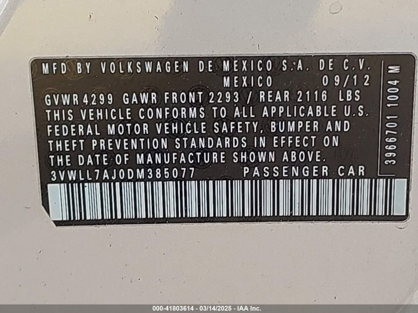 2013 VOLKSWAGEN JETTA 2013 року Дизель, 2.0, Передний привод, vin - 3VWLL7AJ0DM****** из США