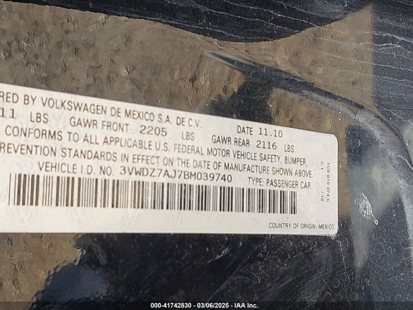 2011 VOLKSWAGEN JETTA 2011 року Бензин, 2.5, Передний привод, vin - 3VWDZ7AJ7BM****** из США
