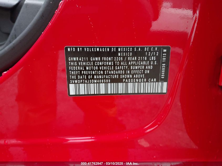 2013 VOLKSWAGEN JETTA 2013 року Бензин, 2.5, Передний привод, vin - 3VWDP7AJ3DM****** из США