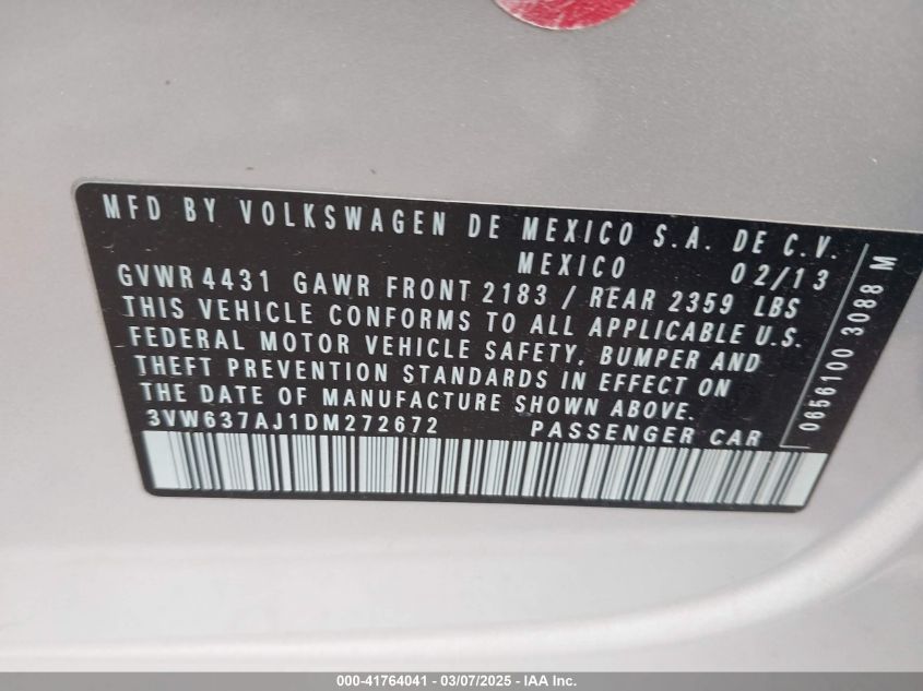 2013 VOLKSWAGEN JETTA 2013 року Гибрид, 1.4, Передний привод, vin - 3VW637AJ1DM****** из США