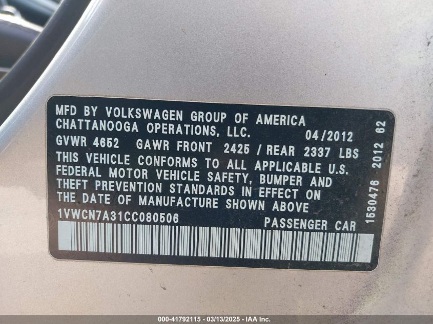 2012 VOLKSWAGEN PASSAT 2012 року Дизель, 2.0, Передний привод, vin - 1VWCN7A31CC****** из США