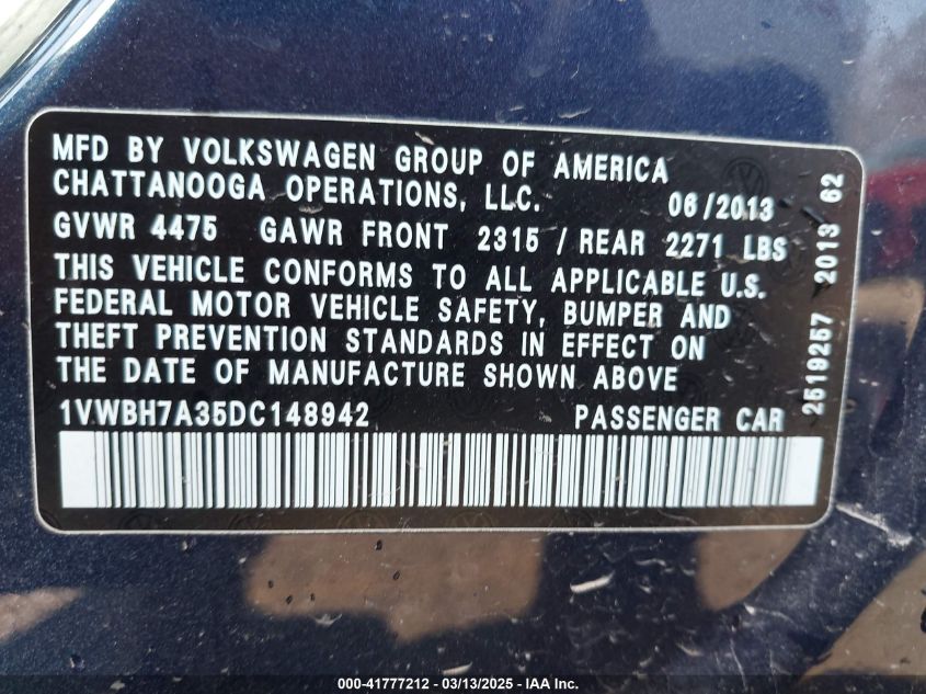 2013 VOLKSWAGEN PASSAT 2013 року Бензин, 2.5, Передний привод, vin - 1VWBH7A35DC****** из США