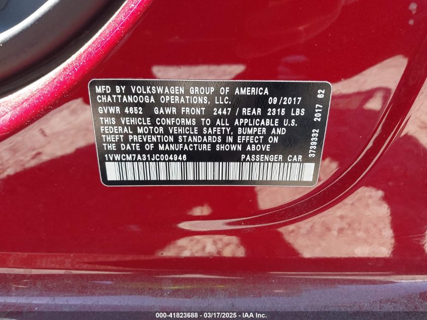 2018 VOLKSWAGEN PASSAT 2018 року Бензин, 3.6, Передний привод, vin - 1VWCM7A31JC****** из США