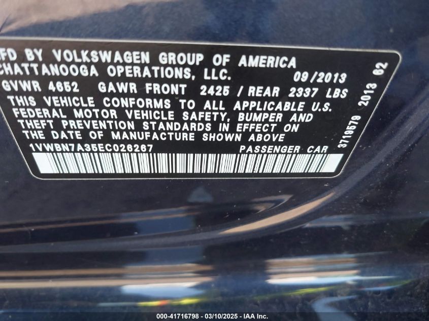 2014 VOLKSWAGEN PASSAT 2014 року Дизель, 2.0, Передний привод, vin - 1VWBN7A35EC****** из США