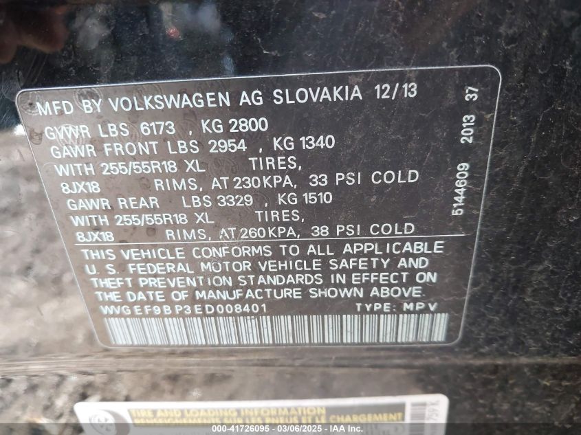 Цвет ЧерныйЦилиндры 6Привод Полный приводVIN WVGEF9BP3ED******Состояние НеизвестноПовреждения Передняя или задняя AutoRIA