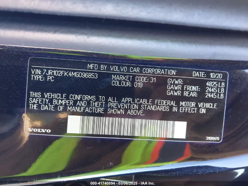 2021 VOLVO S60 2021 року Бензин, 2.0, Передний привод, vin - 7JR102FK4MG****** из США