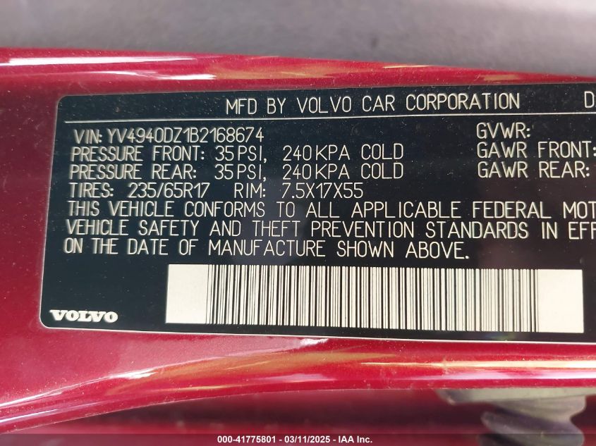 Цвет КрасныйЦилиндры 6Привод Полный приводVIN YV4940DZ1B2******Состояние НеизвестноПовреждения Передняя или задняя AutoRIA