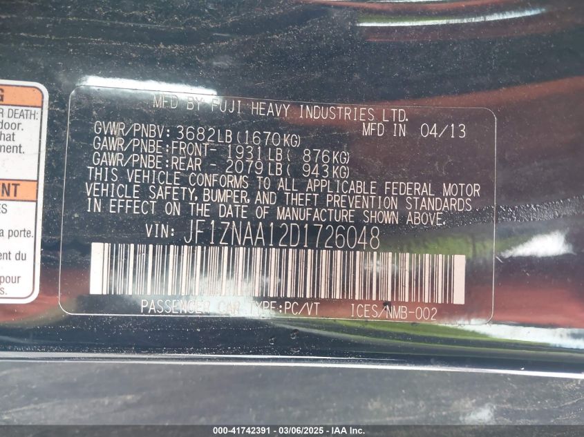 Color GreenCylinders 4Drive Rear wheel driveVIN JF1ZNAA12D1******State Run & Drive VerifiedDamage Front or backAuction date 2025-03-25 AutoRIA