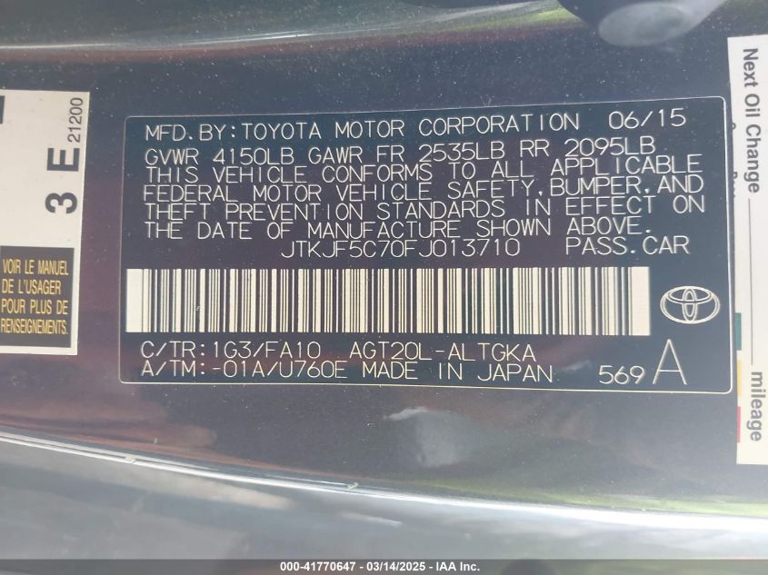 Color GrayCylinders 4Drive Front wheel driveVIN JTKJF5C70FJ******State Run & Drive VerifiedDamage Front or backAuction date 2025-03-27 AutoRIA