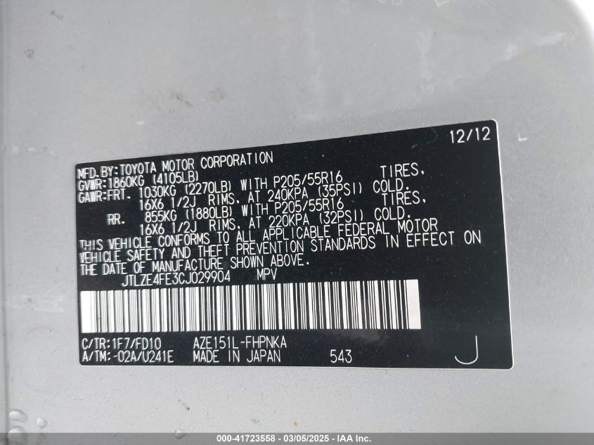 Color SilverCylinders 4Drive Front wheel driveVIN JTLZE4FE3CJ******State Run & Drive VerifiedDamage Left sideAuction date 2025-03-20 AutoRIA