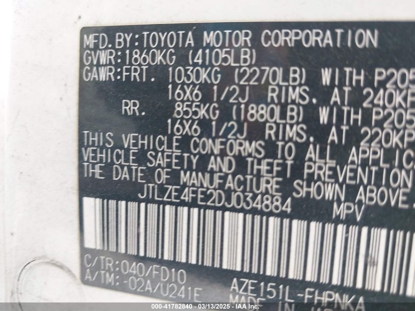 Color WhiteCylinders 4Drive Front wheel driveVIN JTLZE4FE2DJ******State Run & Drive VerifiedDamage Front or back AutoRIA