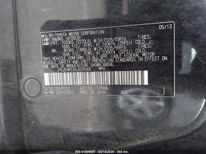 Color BlackCylinders 4Drive Front wheel driveVIN JTLZE4FEXDJ******State Run & Drive VerifiedDamage Front leftAuction date 2025-04-01 AutoRIA
