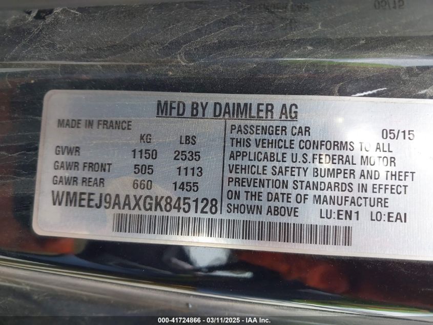 Color GrayDrive Rear wheel driveVIN WMEEJ9AAXGK******State Run & Drive VerifiedDamage BackAuction date 2025-03-25 AutoRIA