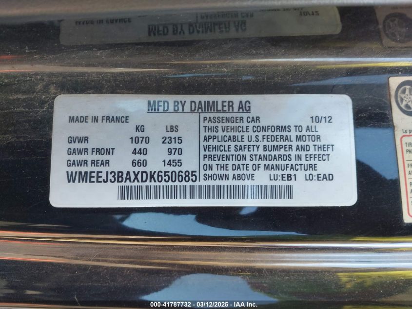 Color GrayCylinders 3Drive Rear wheel driveVIN WMEEJ3BAXDK******State Run & Drive VerifiedDamage InsignificantAuction date 2025-03-26 AutoRIA