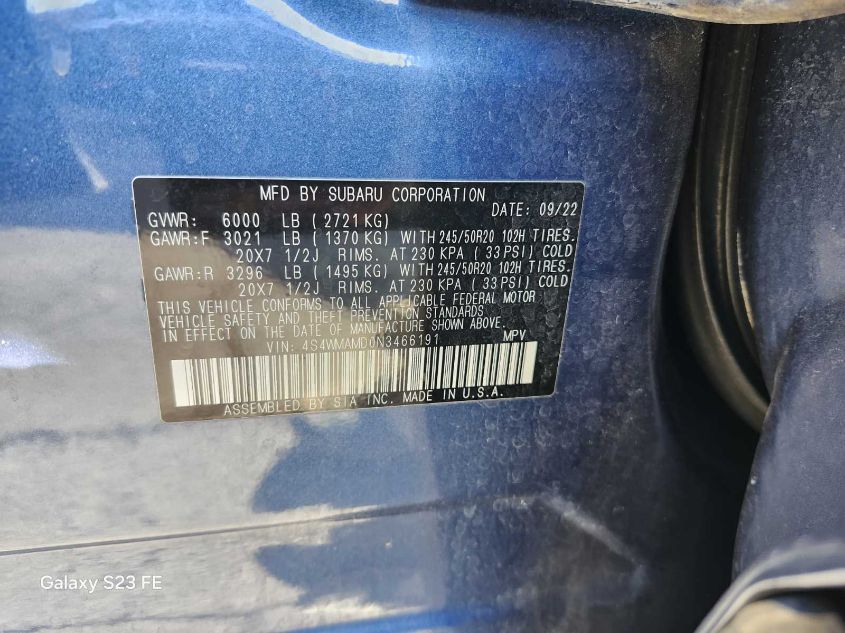2022 SUBARU ASCENT 2022 Gasoline, 2.4, Full drive, VIN - 4S4WMAMD0N3****** from the USA