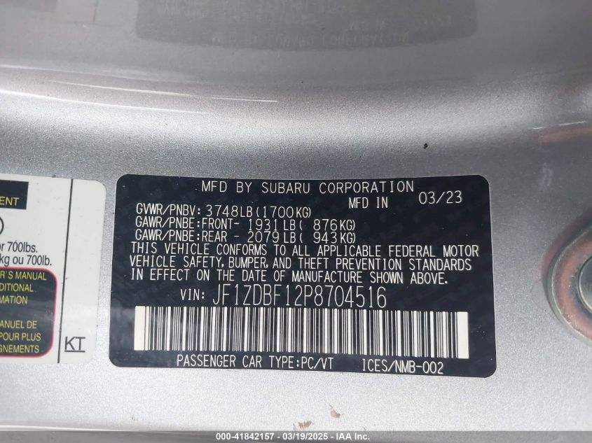 2023 SUBARU BRZ 2023 Gasoline, 2.4, Rear wheel drive, VIN - JF1ZDBF12P8****** from the USA