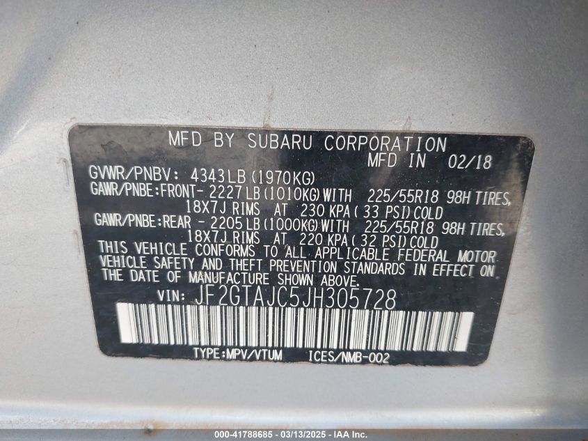 2018 SUBARU CROSSTREK 2018 Gasoline, 2.0, Full drive, VIN - JF2GTAJC5JH****** from the USA