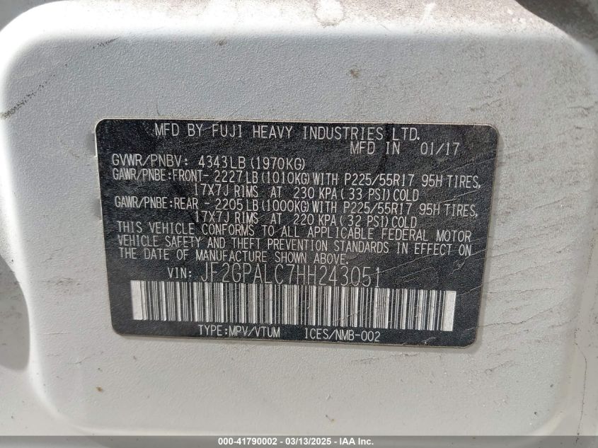 Color WhiteCylinders 4Drive Full driveVIN JF2GPALC7HH******State Run & Drive VerifiedDamage Left side AutoRIA