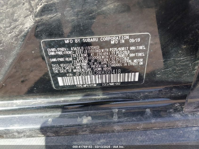 Color BlackCylinders 4Drive Full driveVIN JF2GTAEC8KH******State Run & Drive VerifiedDamage Front or back AutoRIA