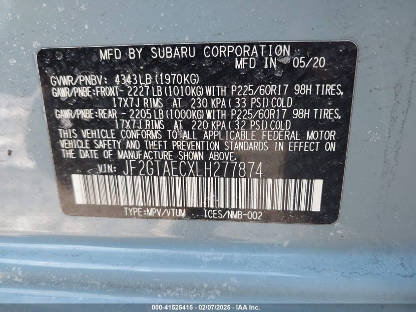 2020 SUBARU CROSSTREK 2020 Gasoline, 2.0, Full drive, VIN - JF2GTAECXLH****** from the USA