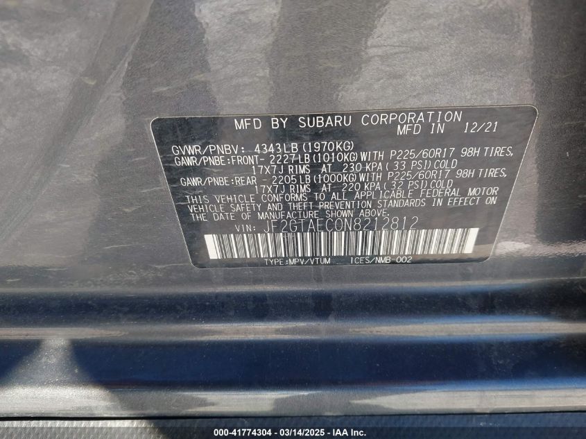 Color GrayCylinders 4Drive Full driveVIN JF2GTAEC0N8******State Run & Drive VerifiedDamage Front or back AutoRIA