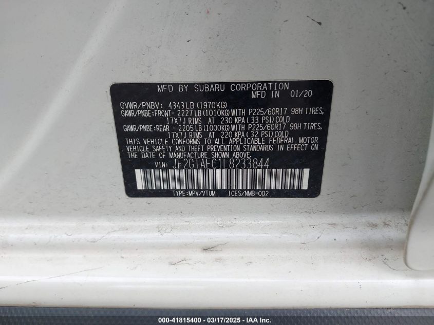 Color WhiteCylinders 4Drive Full driveVIN JF2GTAEC1L8******State Run & Drive VerifiedDamage Front or back AutoRIA