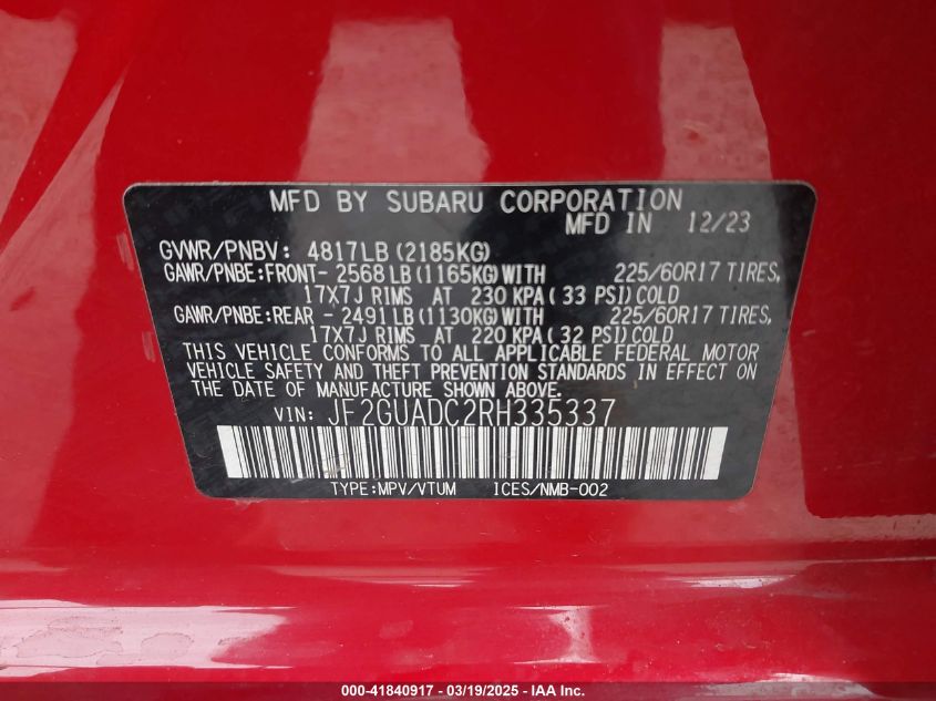 2024 SUBARU CROSSTREK 2024 Gasoline, 2.0, Full drive, VIN - JF2GUADC2RH****** from the USA