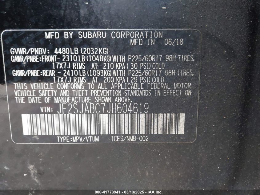 2018 SUBARU FORESTER 2018 Gasoline, 2.5, Full drive, VIN - JF2SJABC7JH****** from the USA