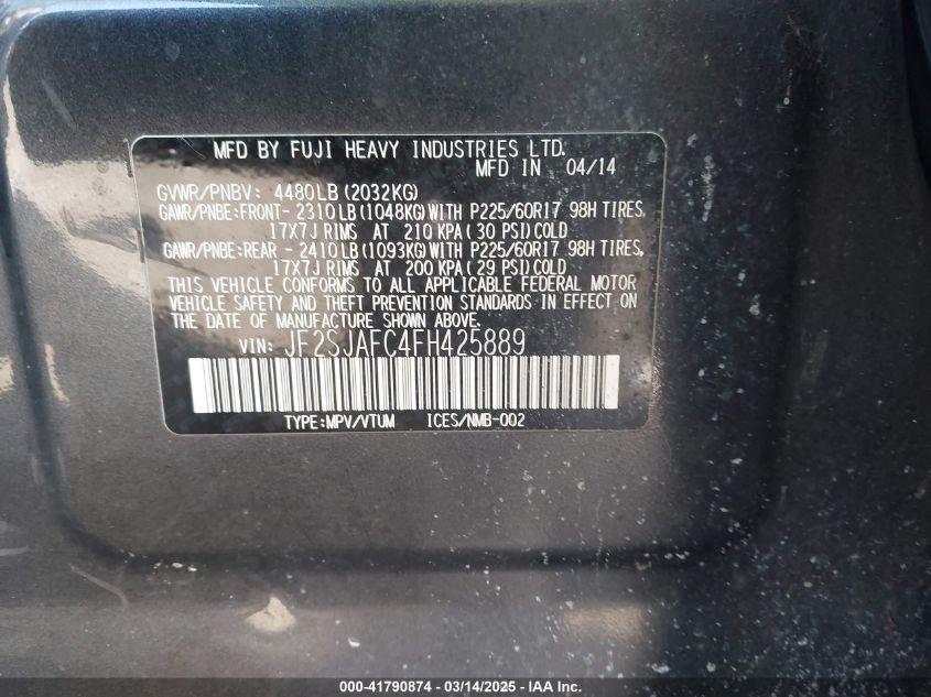 2015 SUBARU FORESTER 2015 Gasoline, 2.5, Full drive, VIN - JF2SJAFC4FH****** from the USA