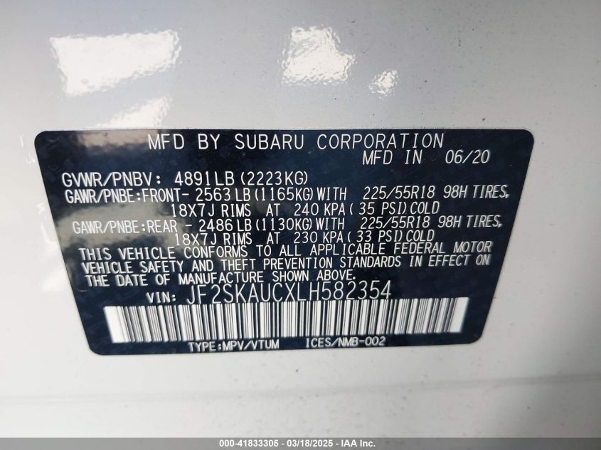 2020 SUBARU FORESTER 2020 Gasoline, 2.5, Full drive, VIN - JF2SKAUCXLH****** from the USA