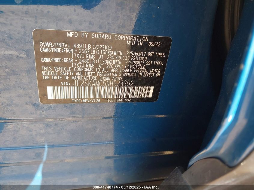 Color BlueCylinders 4Drive Full driveVIN JF2SKAMC5NH******State Run & Drive VerifiedDamage Back AutoRIA
