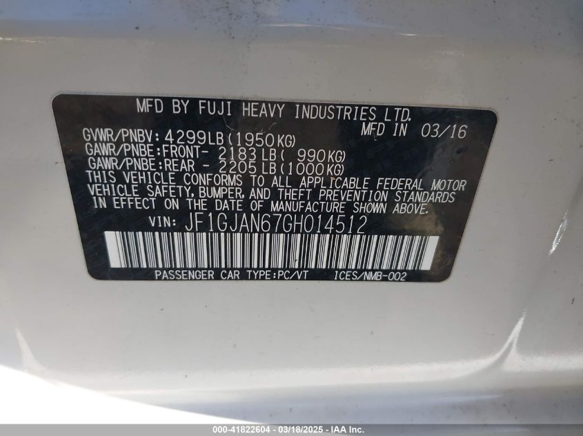 2016 SUBARU IMPREZA 2016 Gasoline, 2.0, Full drive, VIN - JF1GJAN67GH****** from the USA