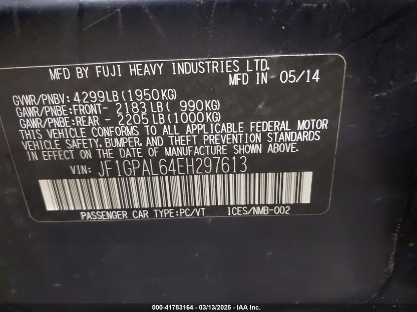 Color BlueCylinders 4Drive Full driveVIN JF1GPAL64EH******State Run & Drive VerifiedDamage Front or back AutoRIA