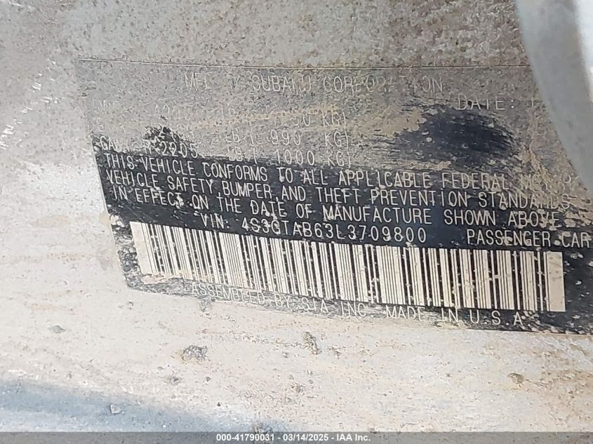 Color SilverCylinders 4Drive Full driveVIN 4S3GTAB63L3******State Run & Drive VerifiedDamage All over the car AutoRIA