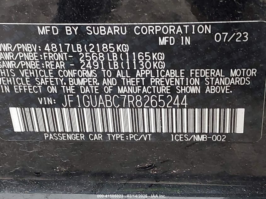 2024 SUBARU IMPREZA 2024 Gasoline, 2.0, Full drive, VIN - JF1GUABC7R8****** from the USA
