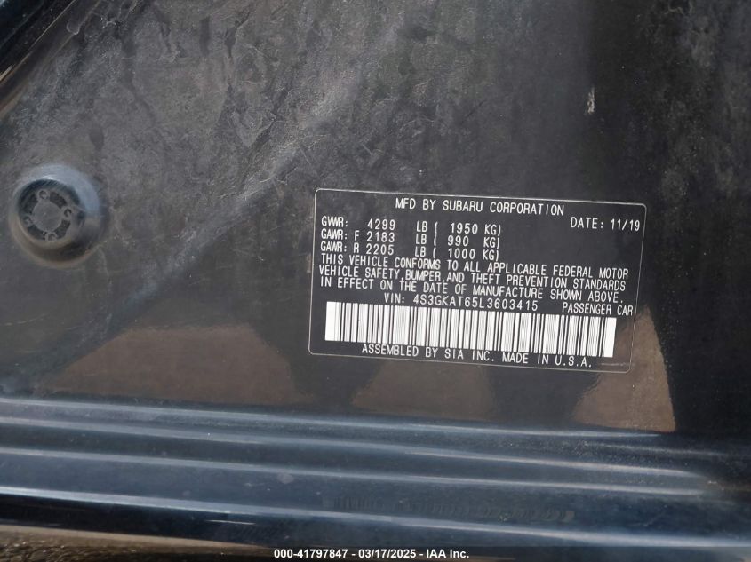 2020 SUBARU IMPREZA 2020 Gasoline, 2.0, Full drive, VIN - 4S3GKAT65L3****** from the USA