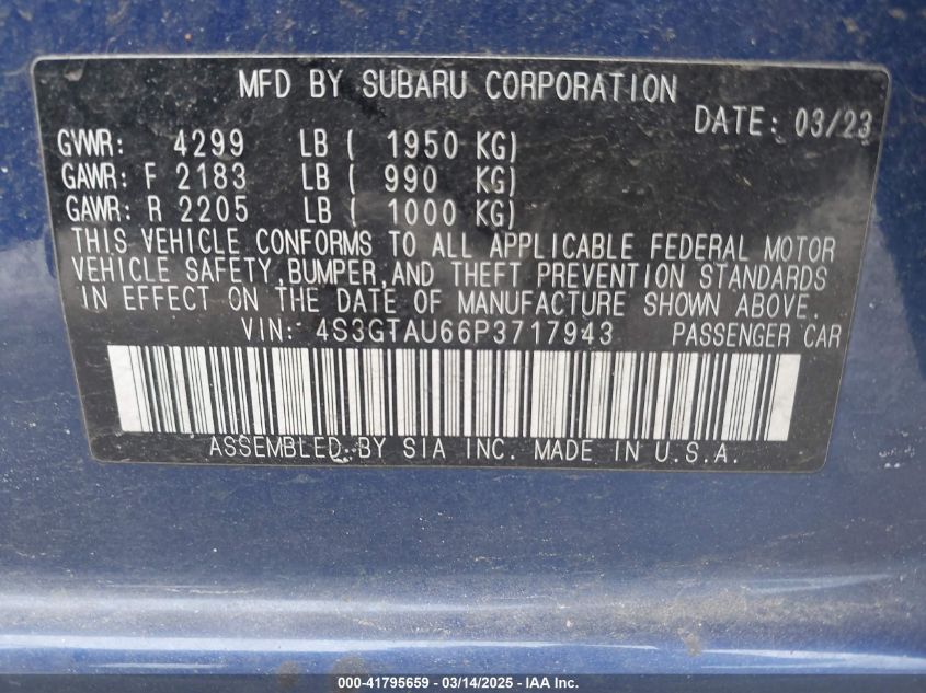 Color BlueCylinders 4Drive Full driveVIN 4S3GTAU66P3******State Run & Drive VerifiedDamage Rear left AutoRIA