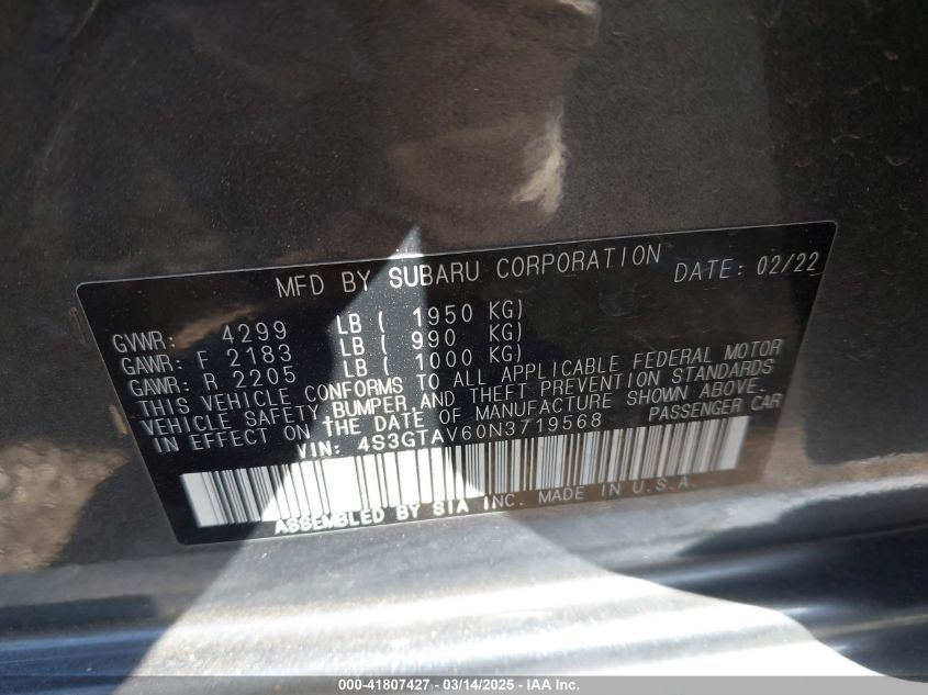 2022 SUBARU IMPREZA 2022 Gasoline, 2.0, Full drive, VIN - 4S3GTAV60N3****** from the USA