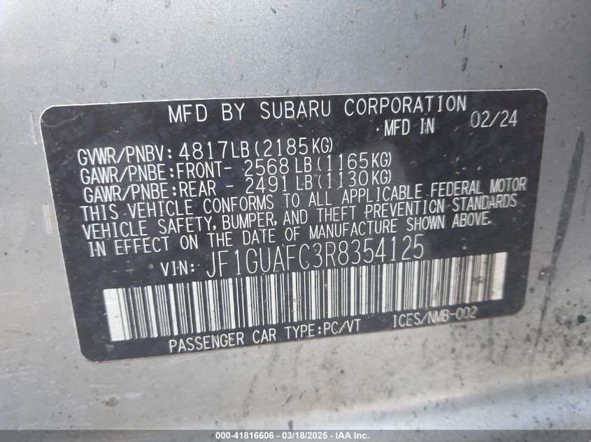 2024 SUBARU IMPREZA 2024 Gasoline, 2.0, Full drive, VIN - JF1GUAFC3R8****** from the USA